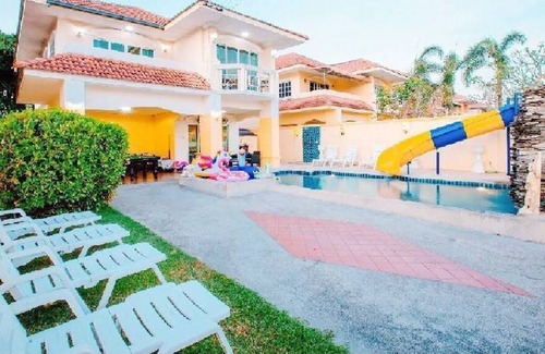 Spacious 4 bedroom villa with large outside area, private pool and great water slide for kids and adults and not to mention your own pub size pool table to enjoy. Separate children's pool, separate sunbathing area, with two other outdoor seating areas to relax and enjoy with outside fans. This private gated village has 24 hr security Local beaches and supermarkets are less than 5 minutes walk away from the villa, this is truly a great location with easy access to Pattaya and Jomtien.