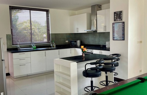 Welcome to Park View Villa – a peaceful 3-bedroom retreat near Phoenix Golf and Jomtien Beach. The villa features a private jacuzzi, pool table, BBQ area, fast Wi-Fi, and a fully equipped kitchen. Located in a quiet, secure gated community with private parking.